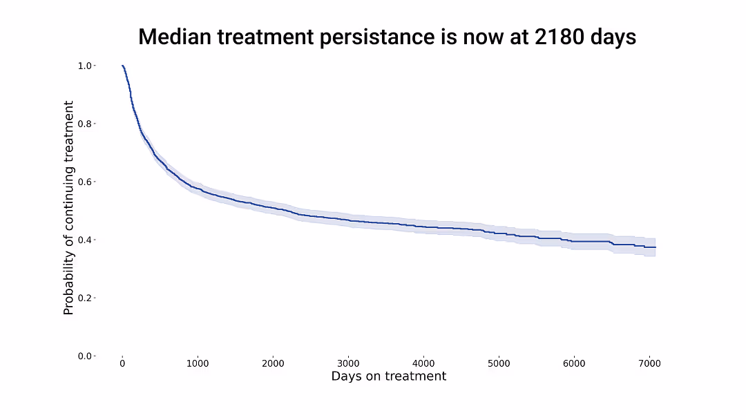 We reveal how long patients stay on treatment, when and why they drop off, and how your product compares to peers.